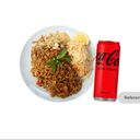 Stekt ris med ägg och blandade grönsaker. Välj mellan kyckling, fläskfilé och räkor.