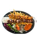 Serveras med lammspett, kycklingspett och köfte