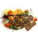 Serveras med adanaspett, lammspett, köfte, lammracks och kycklingspett. För 2 personer