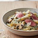 Krämig pastarätt med oxkött, champinjoner och gorgonzola grädde