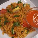 Serveras med smörstekt ris och biryanisås. Välj tillbehör i nästa steg + dryck.