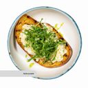 Honungsgratinerad getost på lantbröd. Serveras med husets nötmix och roquette.