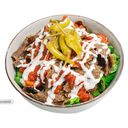 Serveras med bröd, isbergssallad, gurka, tomat, lök, feferoni och kebabsås