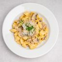 Conchiglie med salsiccia, portabello, grädde och parmesan.