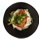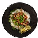 Oätbart ris som var överkokt. Alldeles för mycket gegga på makin.