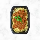 Spaghetti bolognese. Glutenfri spaghetti (180g), nötfärs bolognese 10% (180g) Laktos- och glutenfri