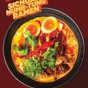 Sichuankyckling, fläskbuljong, sichuan-tare, vetenudlar, kinkål, shitake, salladslök, rostad chilipeppar, ägg, koriander
