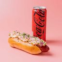 Serveras med valfri korv, välj mellan mos eller pommes, krämig coleslaw, het sriracha och rostad lök