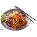 Wokade risnudlar med vitkål, purjolök, morot, ägg, jordnötter, citron, torkad chili + dryck.