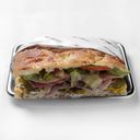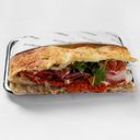 Mortadella, prosciutto, salami, kalkopastrami, provolone, majonnäs, amerikansk senap, bifftomat, romansallad, oregano, rödvinsvinäger