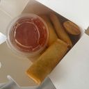 Hemlagade vårrullar fyllda med kyckling, vitkål, morötter och glasnudlar. Serveras med sweet chilisås.