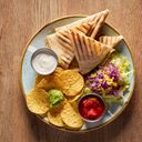 Välj antal quesadillas med två valfria fyllningar samt två dippsåser till dina quesadillas.