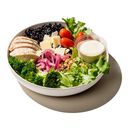 Bjärekyckling, salladsmix, svart råris, picklad rödlök, Grana Padano, broccoliträd, babytomater, valnötter & caesardressing. Koldioxidavtryck: 0,73 kg CO2e. Allergener: ägg, mjölk, laktos, nötter, senap, sulfit. Glutenfri.