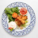 Friterad kyckling med sweet chili-sås.