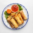 Vårrullar fyllda med glasnudlar, vitlök och strimlade morötter.