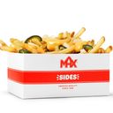 Crispy fries med originaldressing, jalapeños, gul lök, och smält cheddardip. Medium: 0,8 kg CO2e, Large: 0,9 kg CO2e