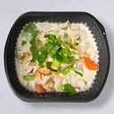 Grön curry med kokosmjölk, paprika, basilika och limeblad.