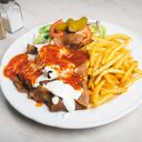 Vegansk ost, veganskkebab, lök, tomat & feferoni