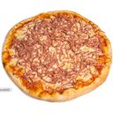 Pizza med skinka, kebabkött, salami, bacon, jalapeños och kebabsås mild.