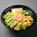 Olika marinerade grönsaker och nötkött, kyckling eller tofu på risbädd med chilipastasås och ägg.