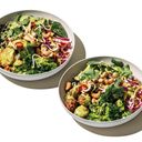 Välj mellan varmt långkokt nötkött eller varma vegobites för vegansk variant. Innehåll; Varma glasnudlar, gurka, ingefärspicklad morot, rödkål, picklad röd chili, salladslök, böngroddar, koriander, rostade jordnötter & jordnöt-limedressing. Serveras från 10.00. Koldioxidavtryck: 2,60 kg C02e / 0,31 kg C02e. Allergener kyckling: Senap, sesam, soja, jordnöt. Allergener vegobites: Sesam, soja, jordnöt. Allergener nötkött: Sesam, soja, jordnöt. Gluten- och mjölkfri.