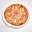 Tomatsås, ost, salami, bacon, färska champinjoner och lök.