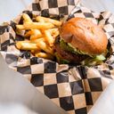 Krispsallad. Alla burgare görs på 150 g högrevsfärs och inklusive pommes